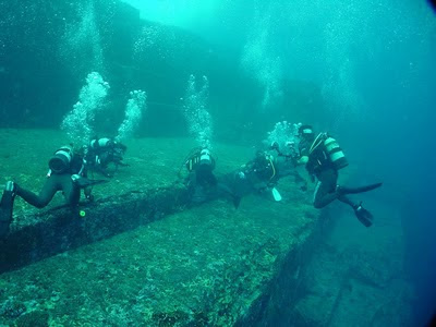 Sin embargo, no son los únicos monumentos sumergidos que pueden datar de 7 mil o10 mil años de antigüedad, En 1985, el buzo japonés Kihachiro Aratake realizaba una inmersión delante a la isla de Yonaguni y observó unas curiosas estructuras construidas por manos humanas; al encontrarse a 30 metros de profundidad, significa que fueron construidas al menos hace 10 mil años cuando las aguas de los océanos se encontraban 60 metros por debajo de su actual nivel, al final de la última época glaciar.